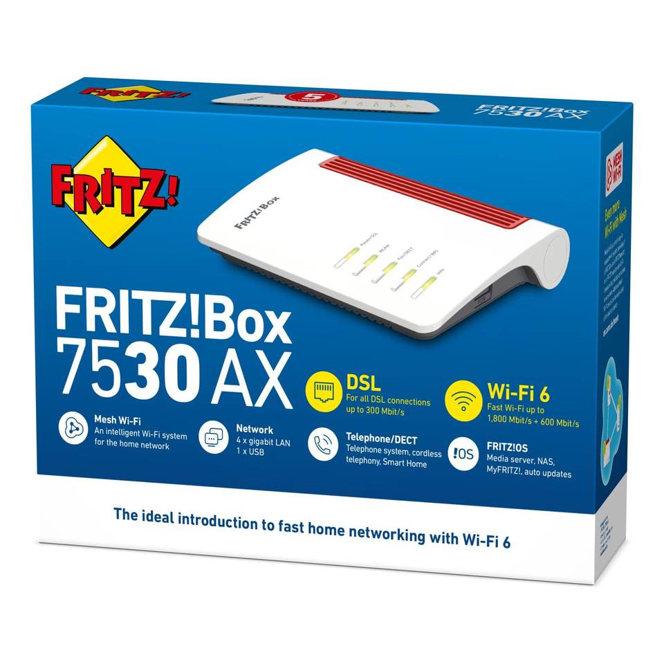 Fritz! BOX 7530 AX Dual Band Modem Router 1000Mbps Wi-Fi 6 1000Mbps Wired 0841346 Available in White and Red