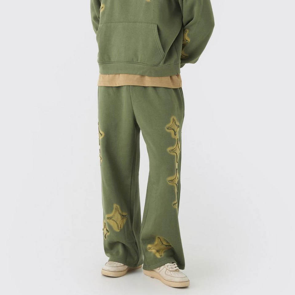 ชุดวอร์มผ้าฟลีซสำหรับผู้ชายชุดวอร์มด้านหน้าและด้านหลังแขนปักลาย