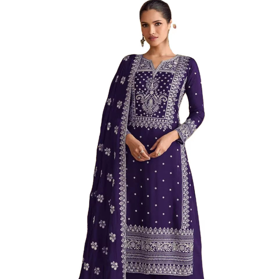 ชุดส่าหรีผ้าไหมปักลายด้านหน้าด้านหลังทั้งสองด้าน พร้อมงานกระจกเงา ซับเหงื่อได้ดี สำหรับผู้หญิง ใส่ไปงานปาร์ตี้ได้