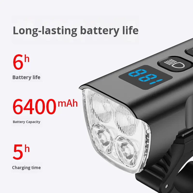 ไฟหน้าจักรยาน 1600 ลูเมนส์ ไฟ LED สว่างพิเศษ สำหรับจักรยานเสือภูเขาและจักรยานไฟฟ้า แบตเตอรี่แบบชาร์จได้ 6400mAh มาตรฐานกันน้ำ IPX5