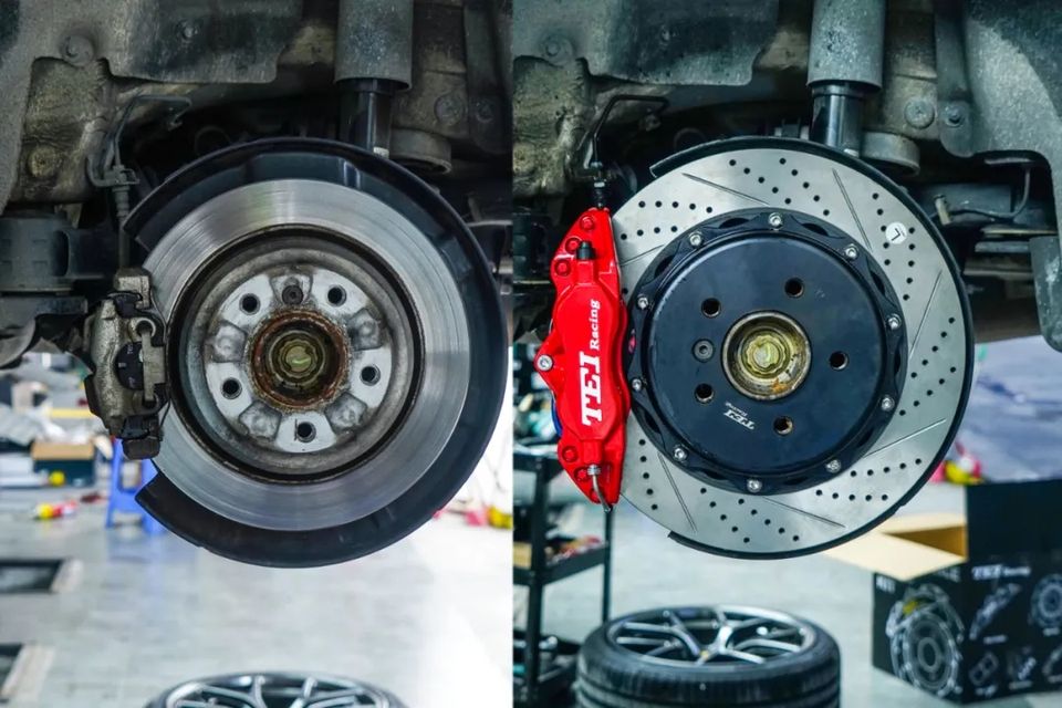 ชุดเบรคหน้าคาลิปเปอร์6หม้อพร้อมดิสก์ระบายอากาศ2ชิ้นล้อ18นิ้วสำหรับ BMW E30 E34 E35 E36 E38 E46 E90 E92 E91