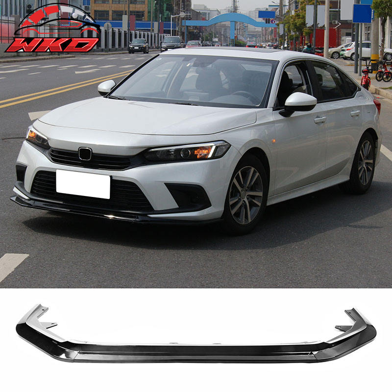 ลิ้นกันชนหน้าสำหรับ Honda Civic 2022-2024 รุ่น RS สไตล์ 3 ชิ้น สปอยเลอร์ PP สีดำเงา ชุดแต่งคุณภาพสูง อะไหล่รถยนต์ ชุดแต่งตัวถัง
