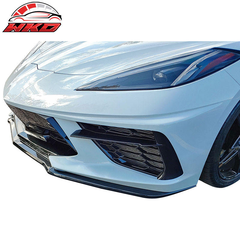 ลิ้นกันชนหน้าสำหรับเชฟโรเลต คอร์เวทท์ ซี8 ปี 2020-2025 สไตล์ Z51 สีดำลายเท็กซ์เจอร์ 3 ชิ้น วัสดุ PP พร้อมดิฟฟิวเซอร์และแผ่นกันกระแทก