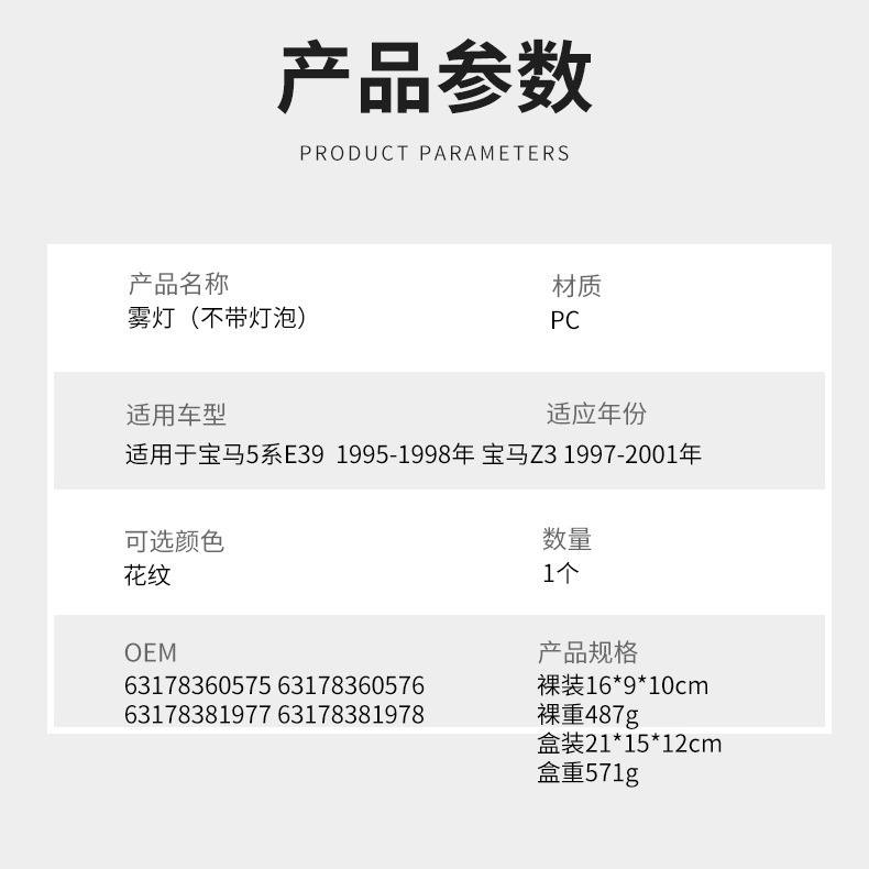 ไฟตัดหมอกหน้าสำหรับรถบีเอ็มดับเบิลยู ซีรีส์ 5 รุ่น E39 Z3 ปี 1995-1998 แบบฮาโลเจน คู่