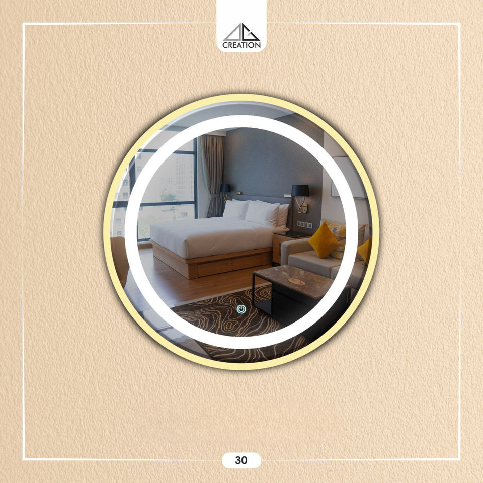 กระจกติดผนัง LED ส่องสว่างด้านหน้าและด้านข้าง ดีไซน์สวยงาม พร้อมตกแต่งด้วยงานศิลปะ สวิตช์แบบสัมผัส เป็นมิตรกับสิ่งแวดล้อมและน้ำหนักเบา