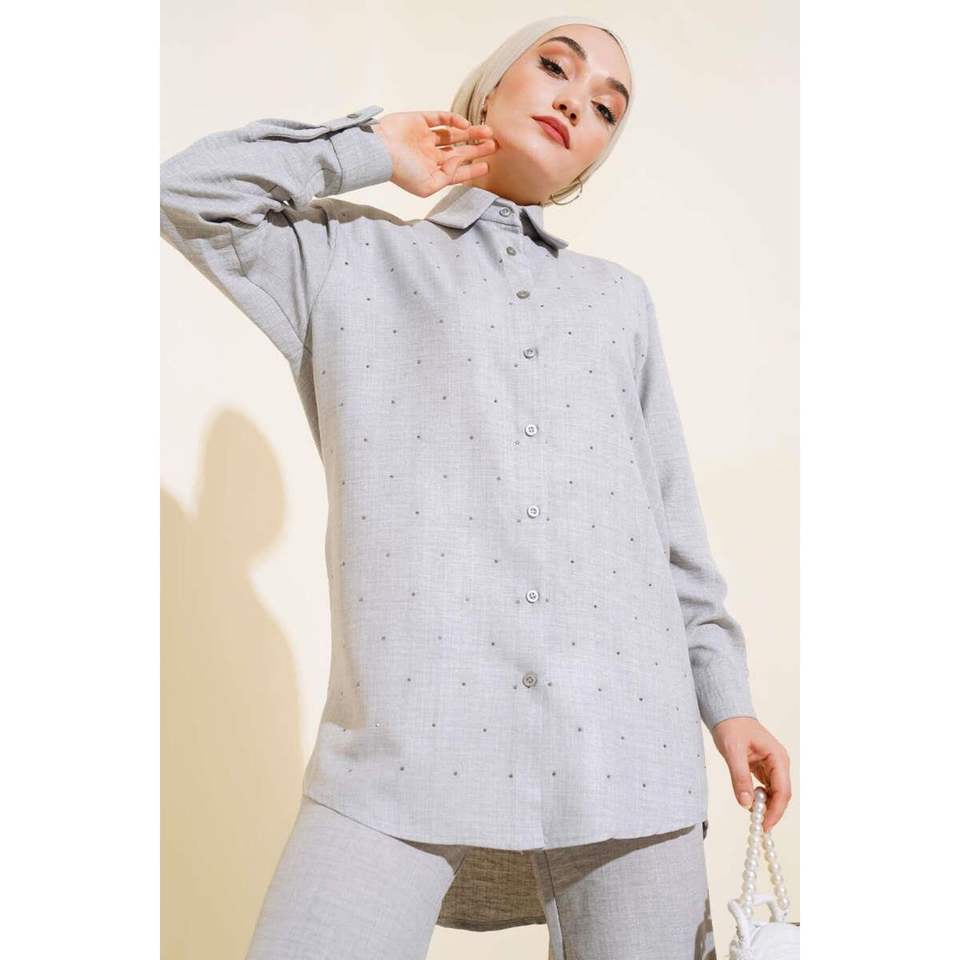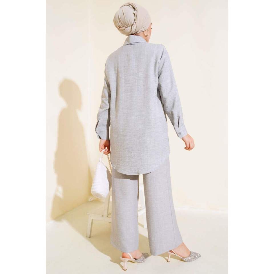 ชุดเสื้อทูนิคด้านหน้าแบบมีรายละเอียดชุด2ชิ้นสีเทา
