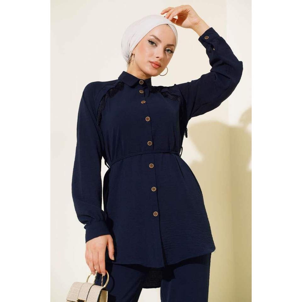 ชุด2ชิ้นแบบมีพู่ด้านหน้าสีน้ำเงินเข้ม