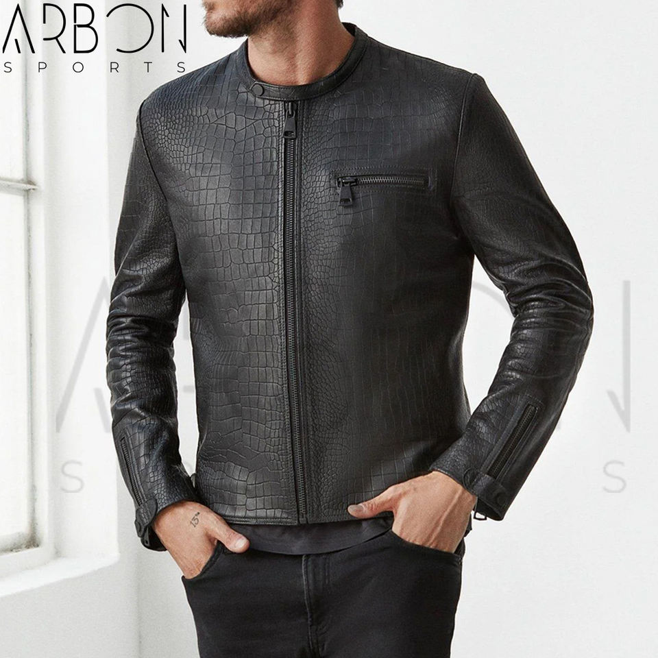 แจ็คเก็ตหนัง PU มีกระเป๋าด้านหน้ามีซิปด้านหน้าดีไซน์ทันสมัยมีโลโก้ตามสั่ง