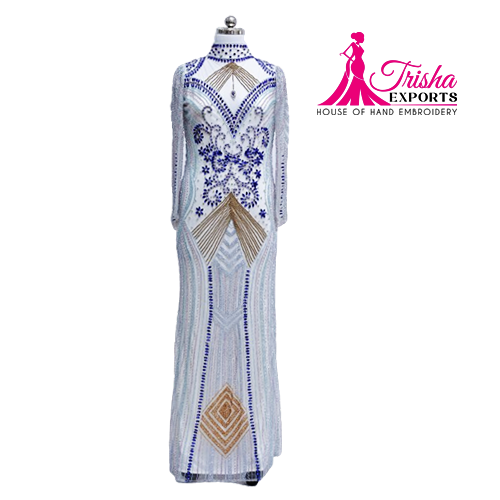 ผ้าปักลายหรูหราพร้อมแผงตาข่ายด้านหน้าและด้านหลังแผงผ้าตาข่ายปักด้วยเทคนิคการถักทอ