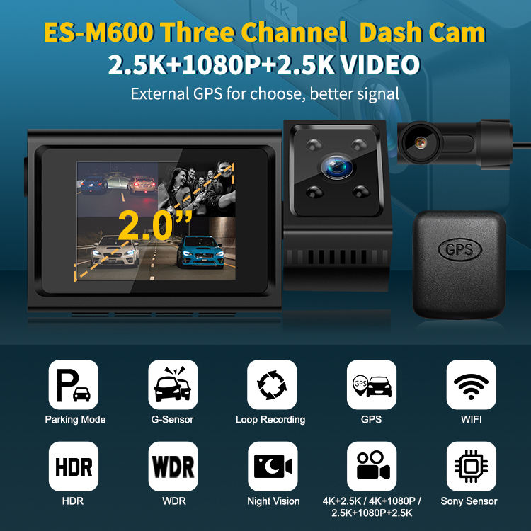 กล้องติดรถยนต์ 3 ทาง พร้อมกล้องมองหลัง ความละเอียด 3840*2160P รองรับ Wifi GPS มองเห็นได้ทั้งด้านหน้าและภายในรถ