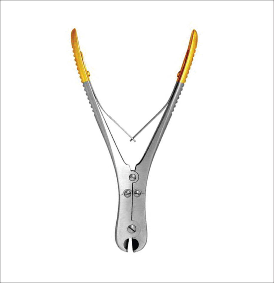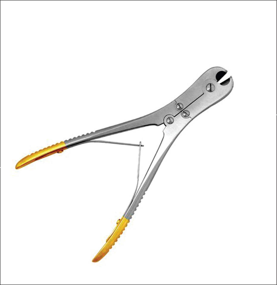 คีมตัดลวดเหล็กสำหรับศัลยกรรมกระดูกและข้อ แบบใช้มือ ด้ามจับสีทอง ขนาด 7 นิ้ว พร้อมที่หนีบด้านหน้าและด้านข้าง