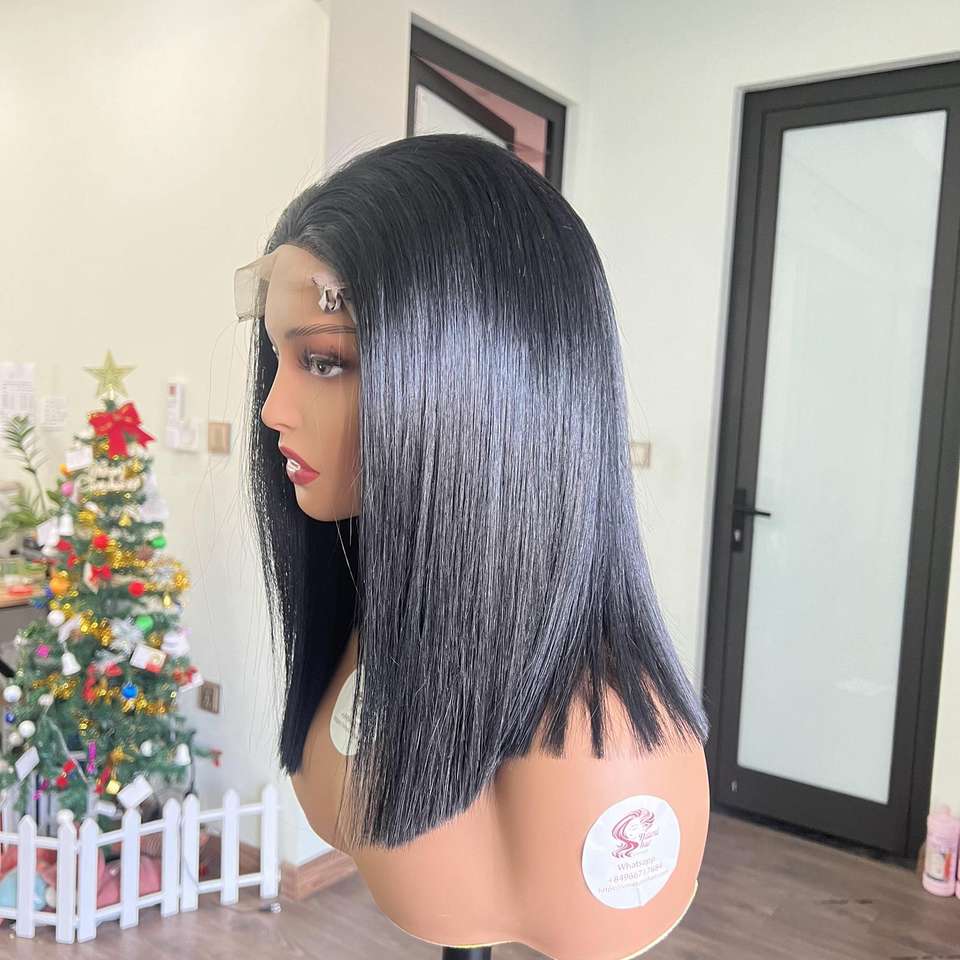 วิกผมด้านหน้าผมมนุษย์สีธรรมชาติกระดูกตรงวิกผม 13x4 ลูกไม้โปร่งใสด้านหน้า 100% เวอร์จินเวียดนามดิบผม