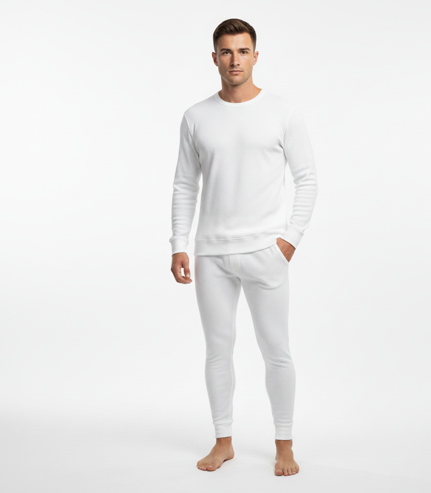 ชุดกันหนาวผู้ชาย FrostHaven สีขาว แขนยาว ผ้าเนื้อนุ่ม ระบายอากาศได้ดี ออกแบบมาเพื่อความสบายที่คงที่ในฤดูหนาว