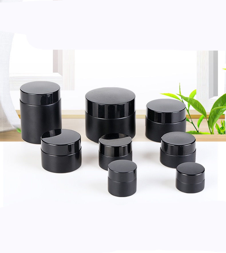 ขวดครีมแก้วฝาสีดำด้าน ขนาด 5 กรัม 10 กรัม 15 กรัม 20 กรัม 1 ออนซ์ 2 ออนซ์ 100 กรัม สำหรับครีมบำรุงผิวหน้า