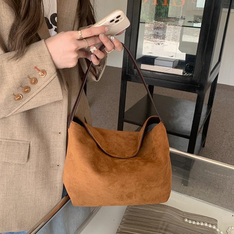 กระเป๋าถือทรงสี่เหลี่ยมเล็กหนังกลับสีน้ำตาลขุ่น พร้อมตัวล็อคแม่เหล็กแบบนุ่ม สำหรับผู้หญิง ใช้ได้ทุกวัน