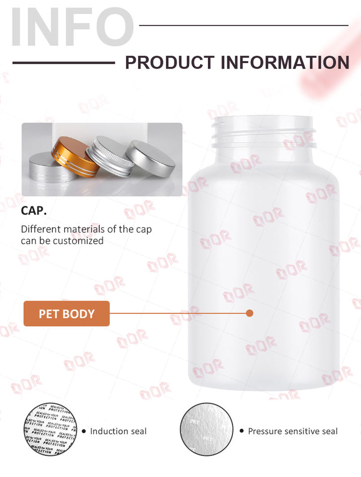 Frosted Tablet Capsule Vitamin PET 60ml Food Grade Bottle with Customize Colour with Wood line Metallic Screw Custom Design Cap