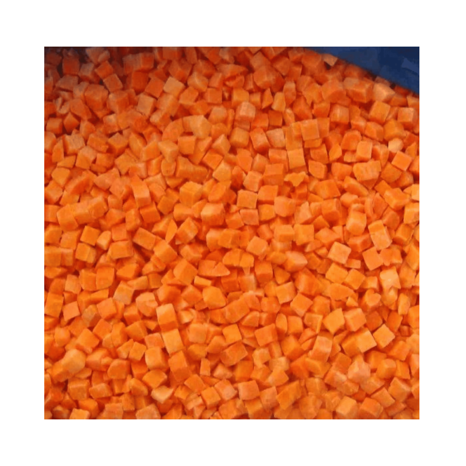 แครอทแช่แข็งจากเวียดนาม หั่นเต๋า ผักหัวเหลืองปอกเปลือกสำหรับทำสตูว์ ชุดเครื่องแกง ครัวบริการอาหาร และบรรจุภัณฑ์สำหรับขายปลีก