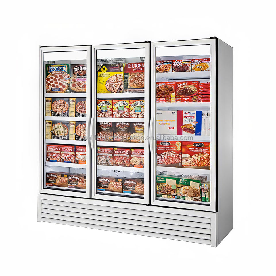 ตู้แช่แข็งแบบตั้ง3ประตูสีดำสีขาวอุณหภูมิเดียวโหมดทำความเย็นไอศกรีมอาหารแช่แข็งตู้โชว์ประตูกระจก
