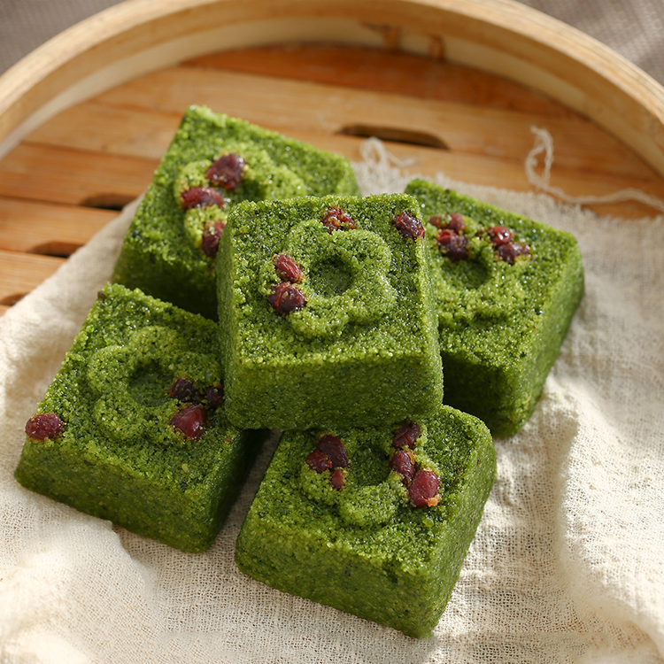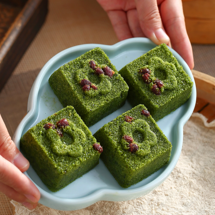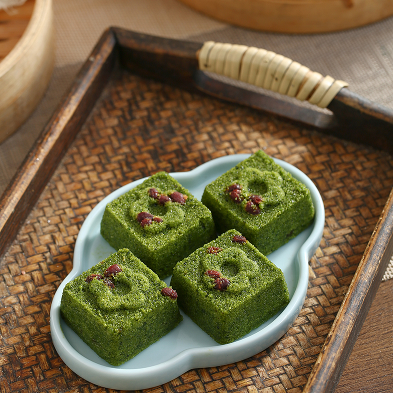 เค้กถั่วแดงข้าวสาลีแช่แข็ง: สีเขียวธรรมชาติ, ขนมเพื่อสุขภาพ, ไอน้ำพร้อม, น้ำตาลต่ำ, ขนมเอเชีย