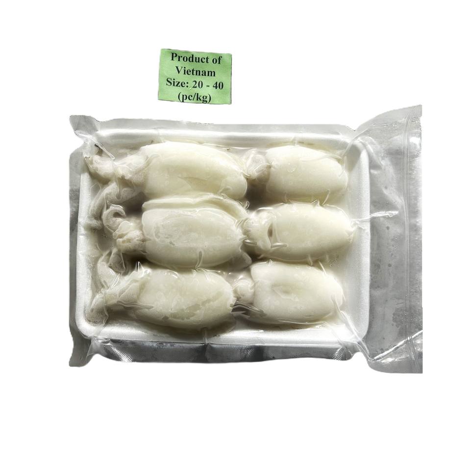 ปลาหมึกแช่แข็งทั้งตัว ทำความสะอาดแล้ว IQF/BQF บรรจุภัณฑ์สุญญากาศ ปรับแต่งแบรนด์ได้ ผู้จัดจำหน่ายขายส่งจากเวียดนาม ราคาแข่งขัน ขนาด 20-40 ซม. 24 ตัว