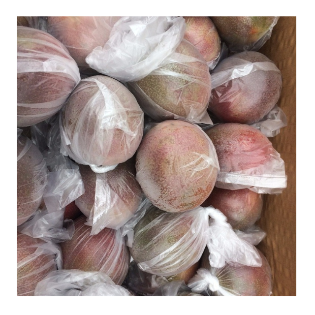 ผลไม้เสาวรสแช่แข็งทั้งหมดบรรจุเป็นกลุ่มสำหรับเครื่องดื่มน้ำผลไม้ปั่นใช้ในโรงงานส่งออกทางการเกษตร