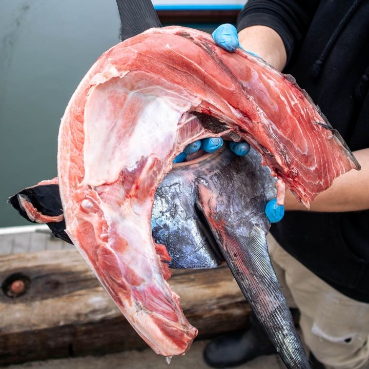 ปลอกคอทูน่าเยลโลว์ฟินแช่แข็งแบบไม่มีกระดูกคัวจับเนื้อนุ่มอาหารทะเลแปรรูปเนื้อสัตว์แช่แข็ง