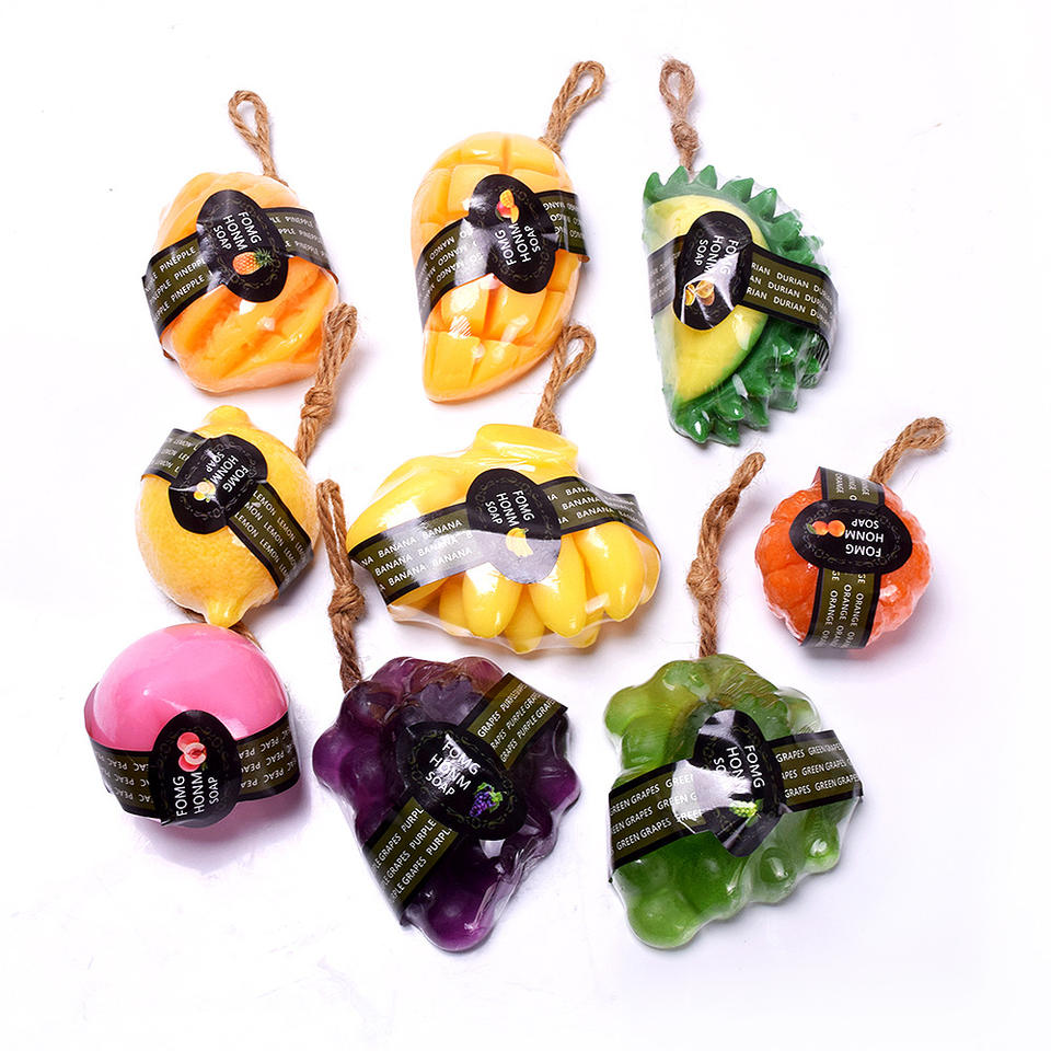สบู่ผลไม้ รสทุเรียน มะม่วง องุ่น พีช ส้ม ของขวัญ น้ำมันหอมระเหย สบู่อาบน้ำเด็ก หลายกลิ่น พร้อมเชือก สไตล์จีน