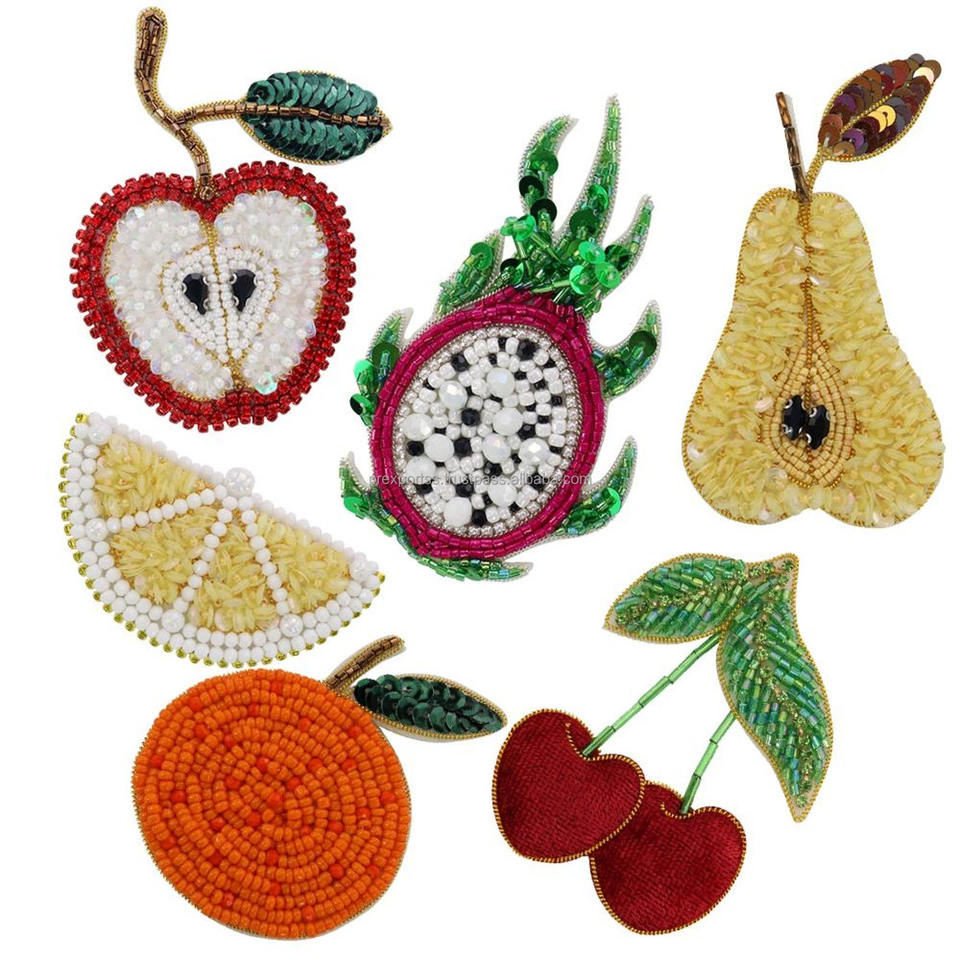 เข็มกลัดทองเหลืองชุบเงินประดับผลไม้ ลูกปัด ปักมือ ประดับเลื่อม ลูกปัดมุก รูปแอปเปิ้ล เชอร์รี่ เลมอน ส้ม มังกร