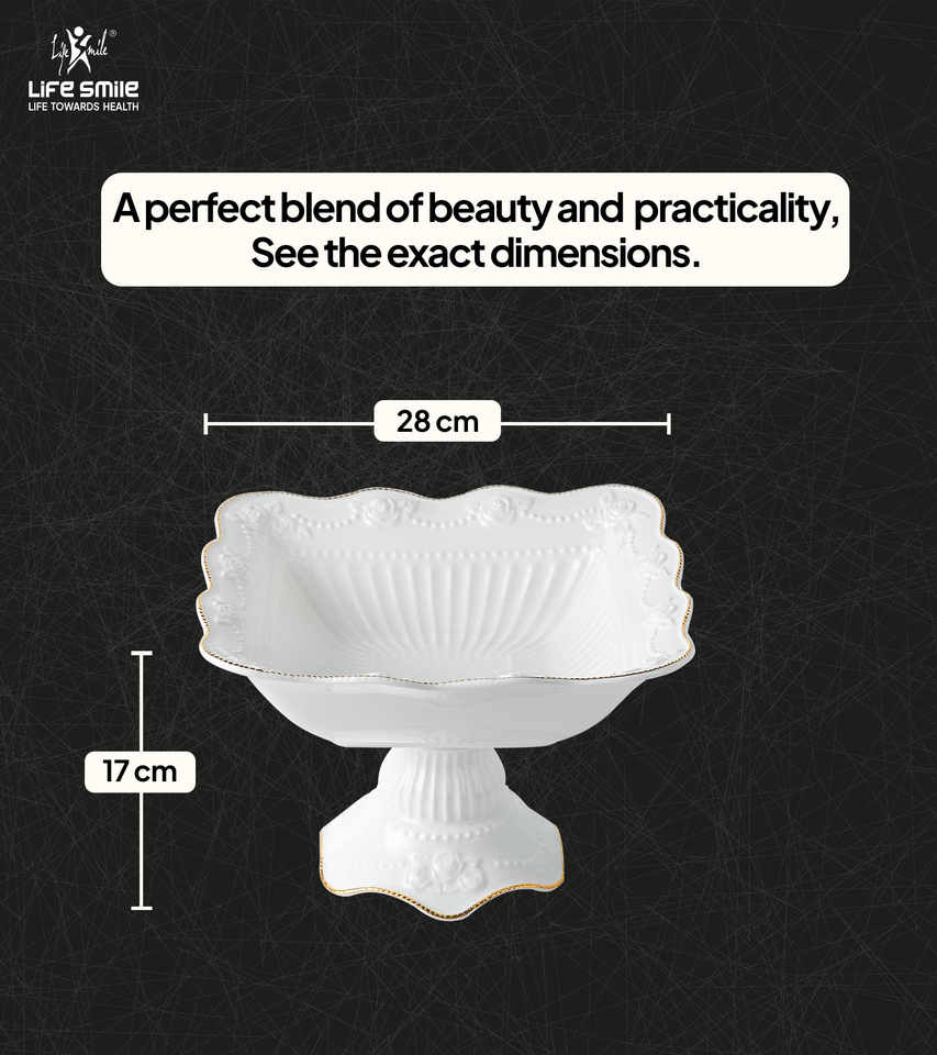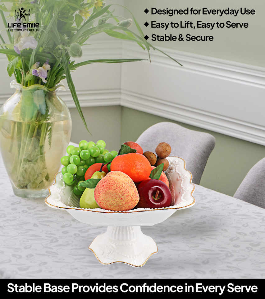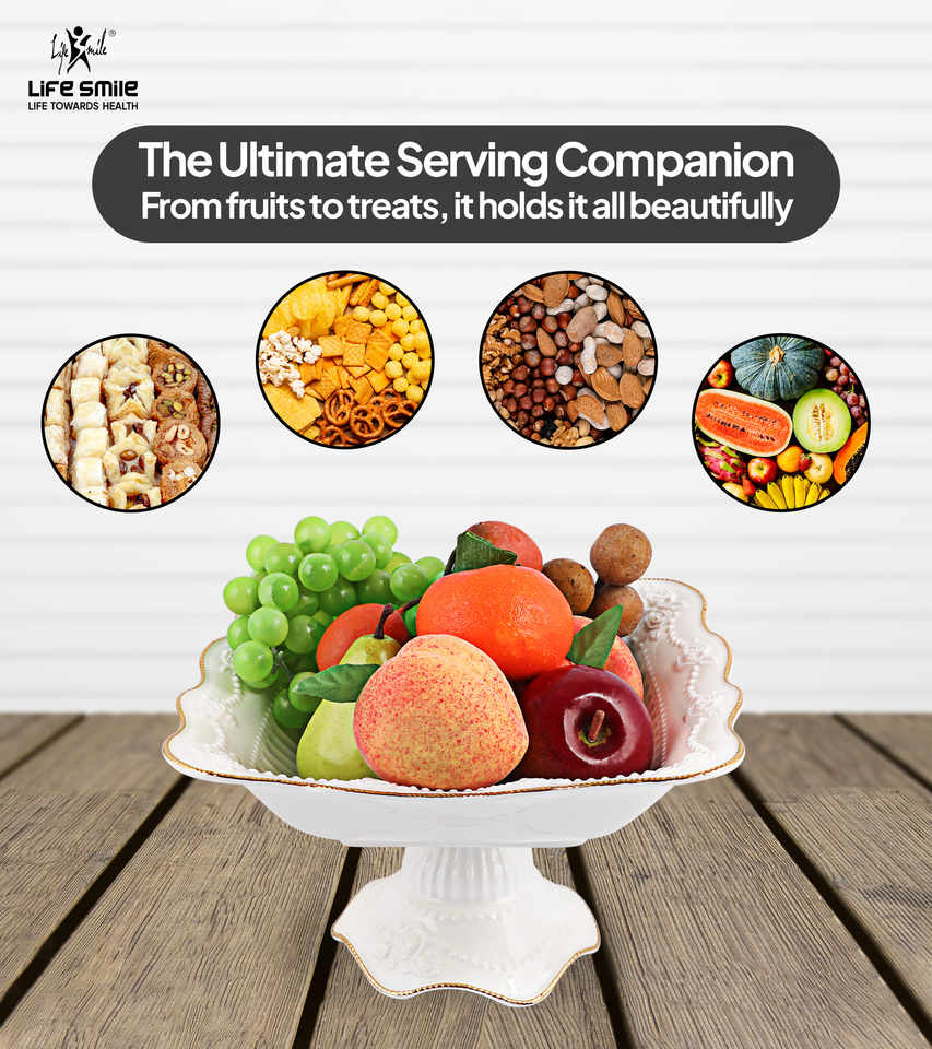 ชามผลไม้จีนสีขาวสุดหรูพร้อมขาตั้งจานเสิร์ฟขัดเงาเป็นมิตรกับสิ่งแวดล้อมและปราศจากสาร BPA