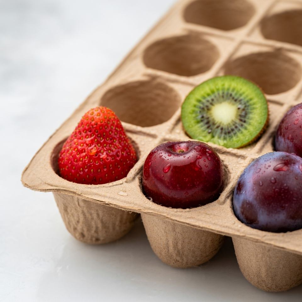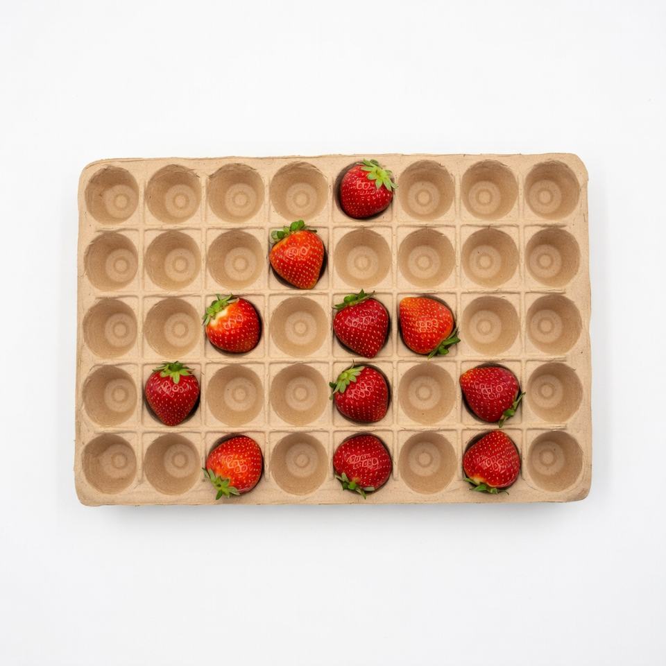 ถาดผลไม้แบบย่อยสลายได้ ป้องกันการแตกหัก เป็นมิตรต่อสิ่งแวดล้อม ผลิตจากเยื่อกระดาษขึ้นรูป สำหรับผลไม้สด จากผู้ผลิตในเวียดนาม กล่องกระดาษ
