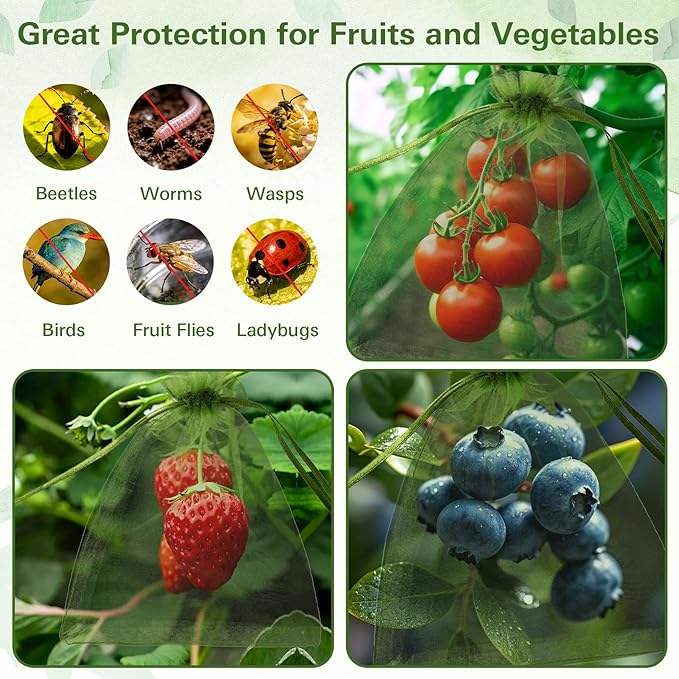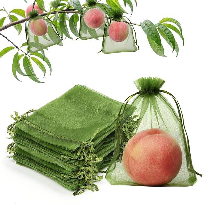 ถุงป้องกันผลไม้, ตาข่ายคลุมผลไม้สีเขียวพร้อมเชือกผูก, ถุงตาข่ายป้องกันศัตรูพืช, เหมาะสำหรับการควบคุมแมลงศัตรูพืช