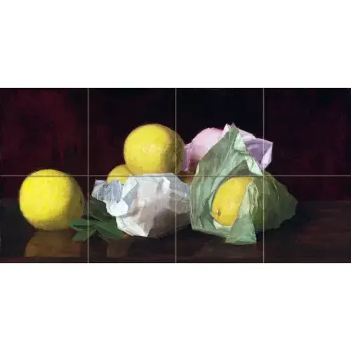 กระเบื้องผลไม้และมะนาวภาพจิตรกรรมฝาผนังห้องน้ำผนัง backsplash หินอ่อนแท้เซรามิกที่มีการออกแบบที่ซับซ้อนสำหรับตกแต่งบ้าน