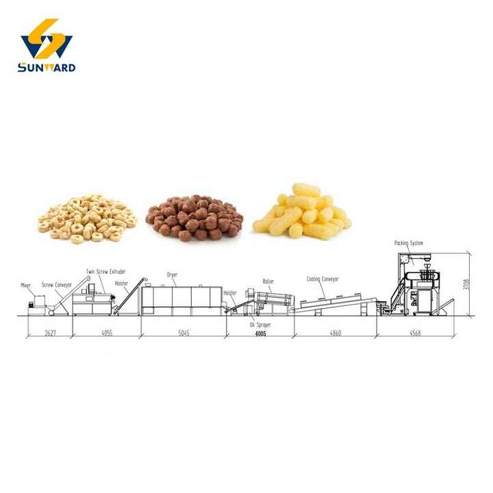 เครื่องอัดและเครื่องอบขนมสายการผลิตขนมขบเคี้ยวแบบผงข้าวโพดรสผลไม้