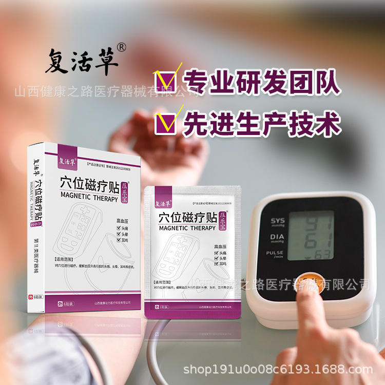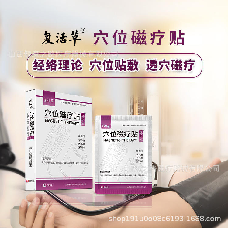ฟู่ฮัวเฉาแผ่นแม่เหล็กบำบัดจุดฝังเข็ม 6 ชิ้น บรรเทาความดันโลหิต สำหรับอาการปวดหัว วิงเวียนศีรษะ หูอืด อุปกรณ์การแพทย์คลาส II