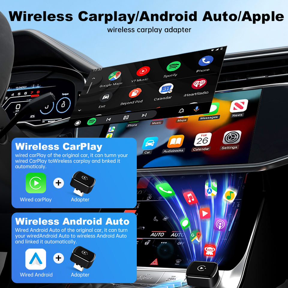 Fuallwin อะแดปเตอร์ CarPlay ไร้สาย DIY แบบ2-in-1พร้อม iOS 11/12/13รองรับ dual-band WIFI Universal fitment
