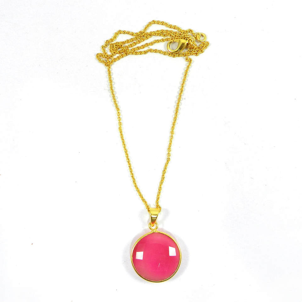 จี้พลอยชาลเซโดนีสีบานเย็น ประดับขอบด้วยทองคำ 18k พร้อมสร้อยคอ เครื่องประดับแฟชั่น
