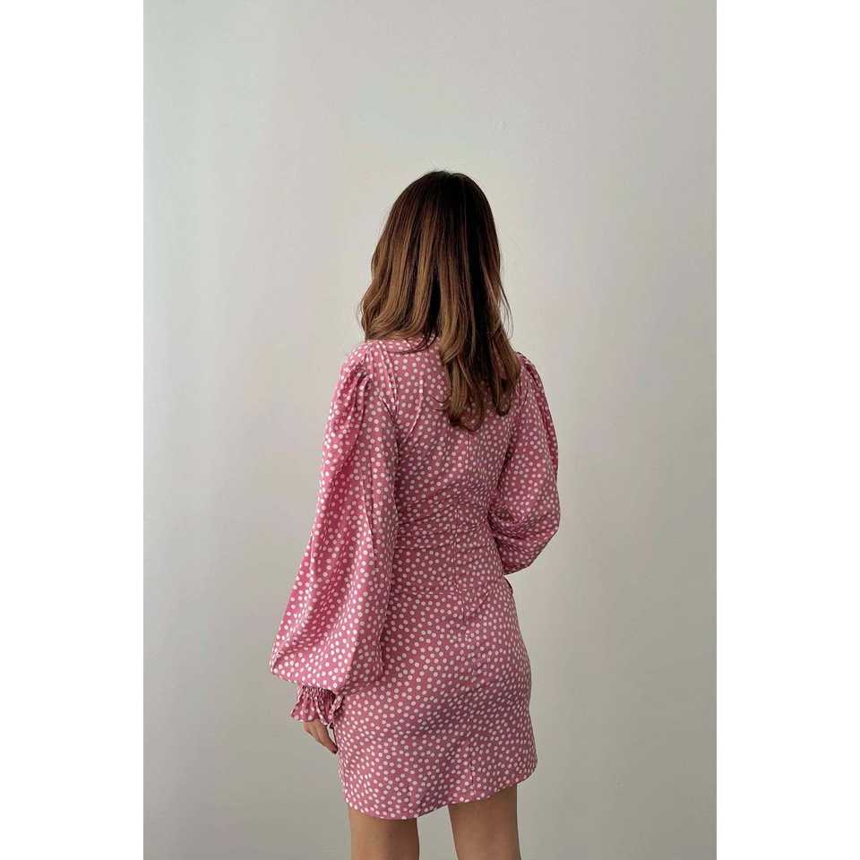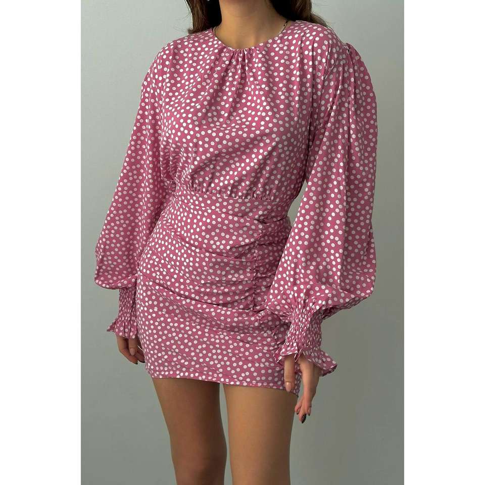 เดรสทรงบอดี้คอนสีชมพูฟูเชียลายจุด คอทรงโอ ผูกเอว ผ้าทอ สวมใส่ได้ทุกวัน สไตล์ลำลอง