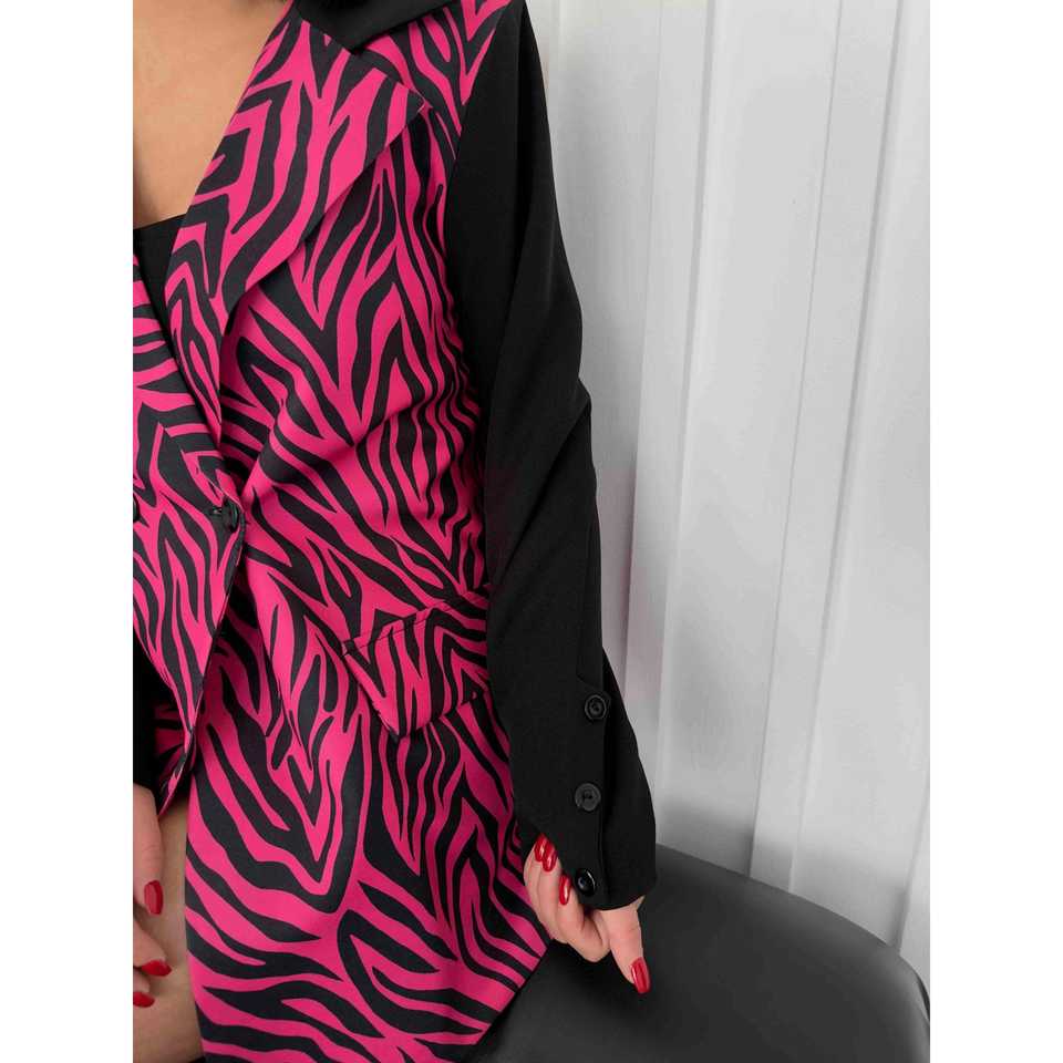 เสื้อแจ็คเก็ตผู้หญิงลายม้าลายสีบานเย็น ไซส์ S แบบเบลเซอร์ แขนสีดำ ดีไซน์ปกเสื้อ