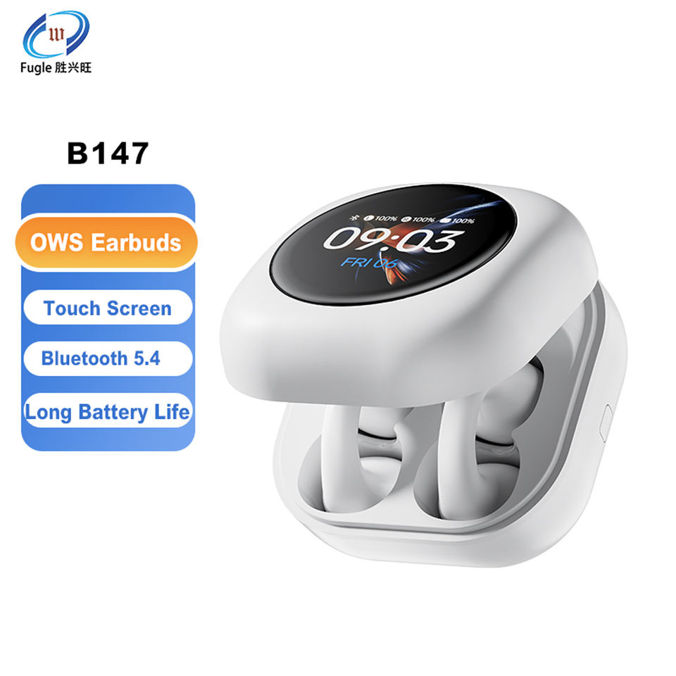 Fugle หูฟังเอียร์บัด AI แบบมีคลิปหนีบหู B147หูฟังบลูทูธ BT5.4ตัดเสียงรบกวน IPX5หูฟังกันน้ำพร้อมจอแสดงผล