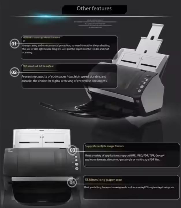 เครื่องสแกนเอกสาร CCD แบบอัตโนมัติสองด้านของ FUJITSU เครื่องสแกนเอกสาร HD แบบพกพา Fi-8190สี A4แบบ USB