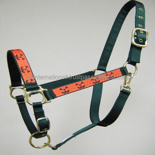 สายจูงม้าไนลอนหลากสีแบบปรับได้เต็มที่ ดีไซน์ฮาโลวีน ตกแต่งบนแก้มและจมูก ขนาดใหญ่พิเศษสำหรับม้าโคบ