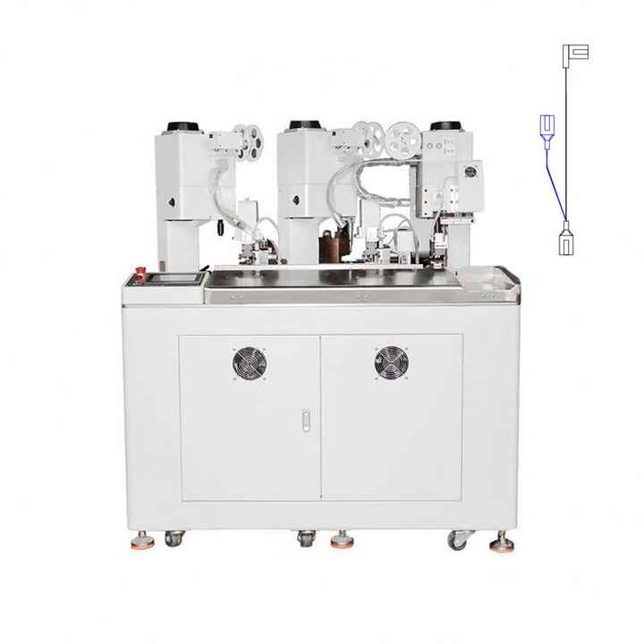 เครื่องจีบขั้วสามปลายอัตโนมัติเต็มรูปแบบเครื่องกดตัดลวดคู่แบบอัตโนมัติ