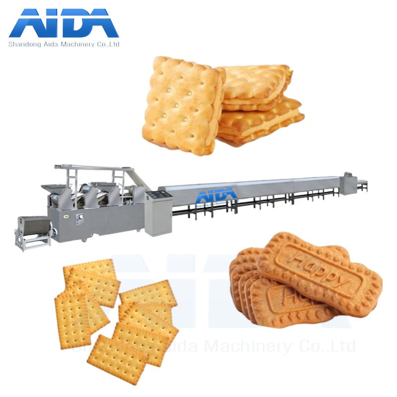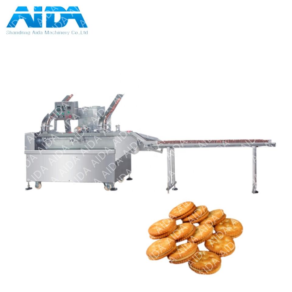 เครื่องทำคุกกี้สแตนเลสบิสกิตแบบเนื้อนุ่มเครื่องทำบิสกิตแบบแข็งแบบอัตโนมัติเต็มรูปแบบเครื่องทำแซนวิชครีมบิสกิต