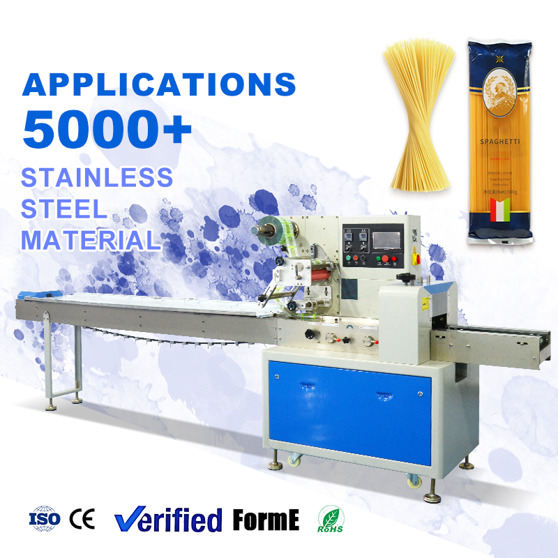 เครื่องบรรจุภัณฑ์แบบอัตโนมัติเต็มรูปแบบสำหรับถุงพลาสติกแบบหมอน พร้อมฟังก์ชั่นปิดผนึกและห่อ มีตัวเลือกหลายสี