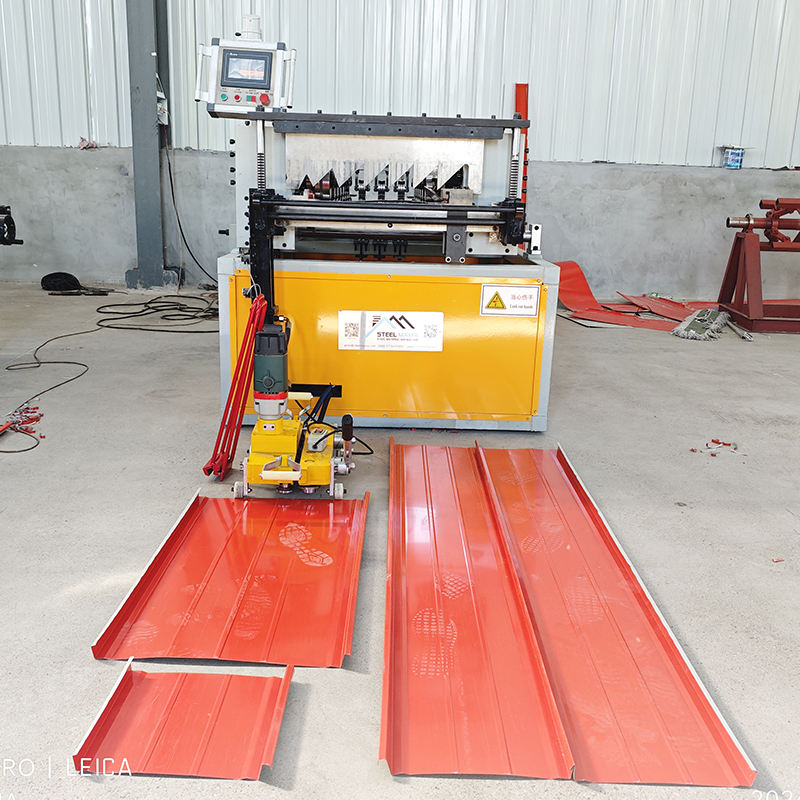 เครื่องขึ้นรูปม้วนแผ่นหลังคาตะเข็บแบบตั้งแบบพกพาโลหะชุบสังกะสีแบบอัตโนมัติเต็มรูปแบบสำหรับโคลัมเบีย