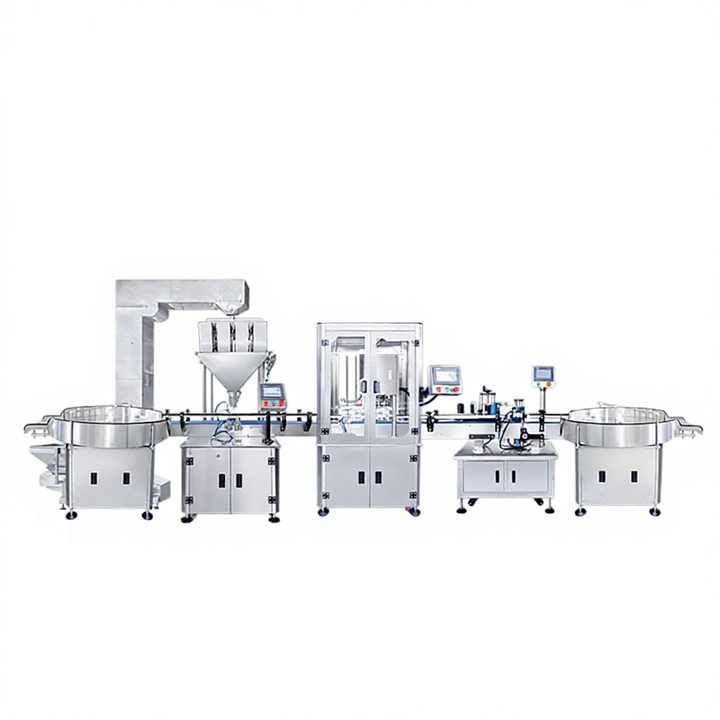 Z-type conveyor, Bottle sorting machine, 4-hopper weighing and granule filling machine, Capping machine, Bottle collector