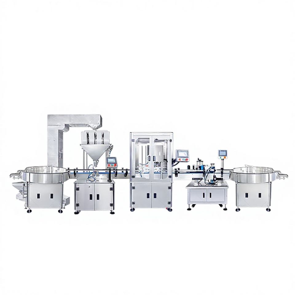 สายการบรรจุเม็ดพลาสติกอัตโนมัติเต็มรูปแบบ พร้อมลิฟต์รูปตัว Z เครื่องชั่งแบบเส้นตรง 4 หัว เครื่องจัดเรียงขวด เครื่องปิดฝา และเครื่องสะสมขวด