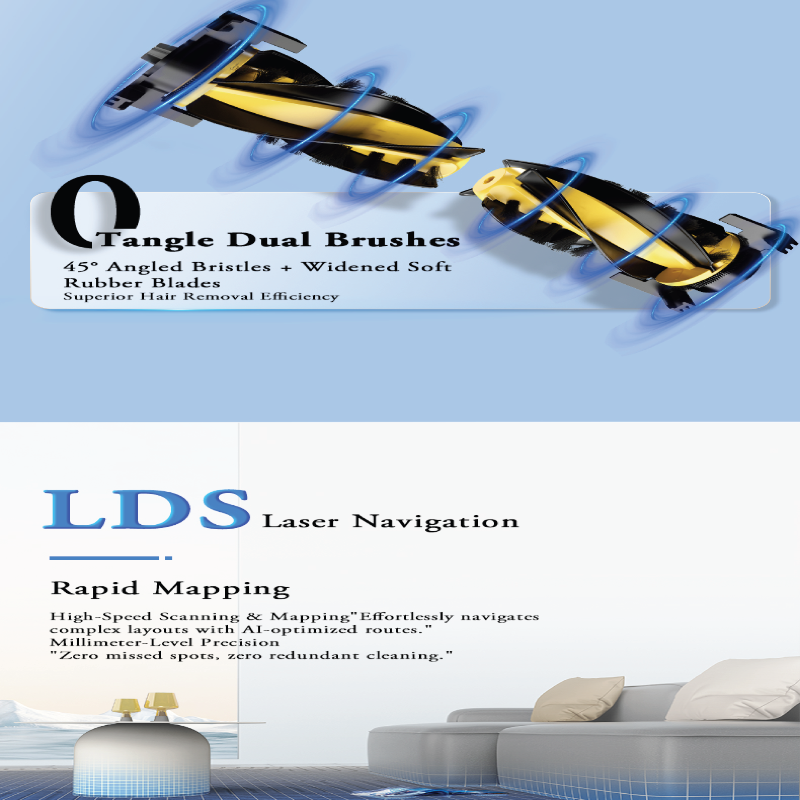 คุณสมบัติ:ทำความสะอาดอัตโนมัติ, เป็นมิตรกับสิ่งแวดล้อม, ชาร์จอัตโนมัติ, ทำความสะอาดขอบ, การจัดตารางเวลา