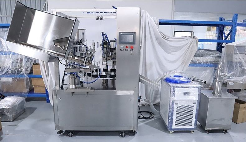 เครื่องบรรจุและปิดผนึกหลอดพลาสติกแบบอัตโนมัติเต็มรูปแบบสำหรับครีมยาสีฟัน นม และสารเคมีชนิดหลอดอ่อนพร้อมระบบทำความร้อนภายใน