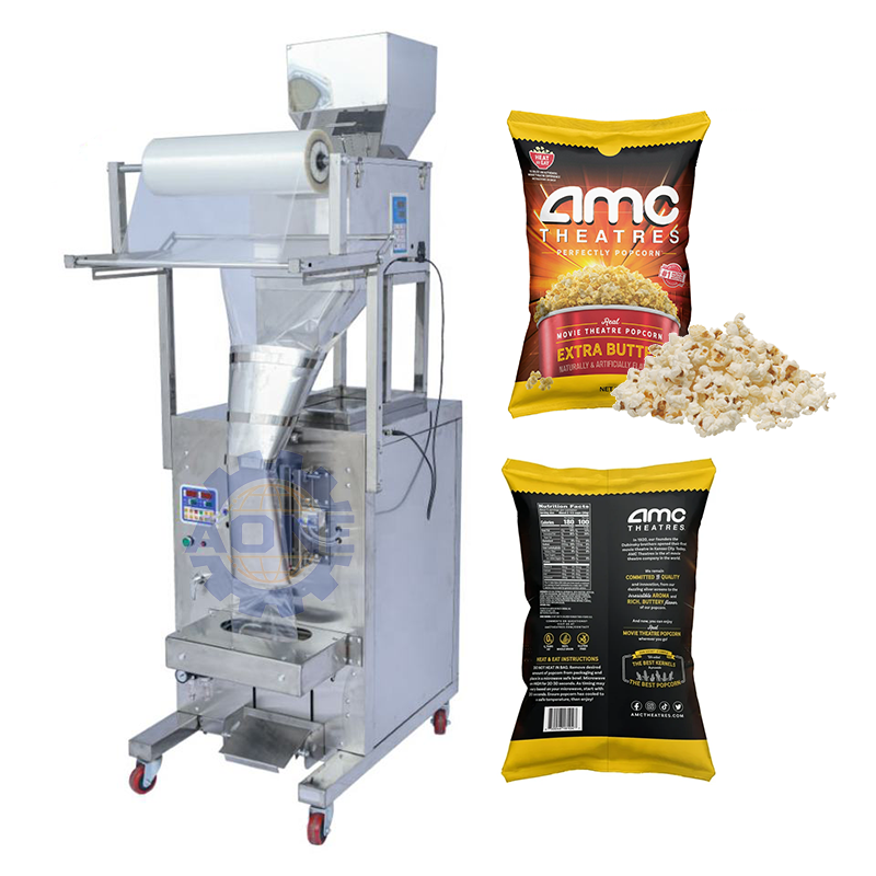 เครื่องบรรจุภัณฑ์แบบอัตโนมัติเต็มรูปแบบสำหรับชั่งน้ำหนักและบรรจุขนมขบเคี้ยวในซอง เครื่องบรรจุป๊อปคอร์น